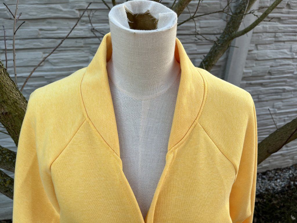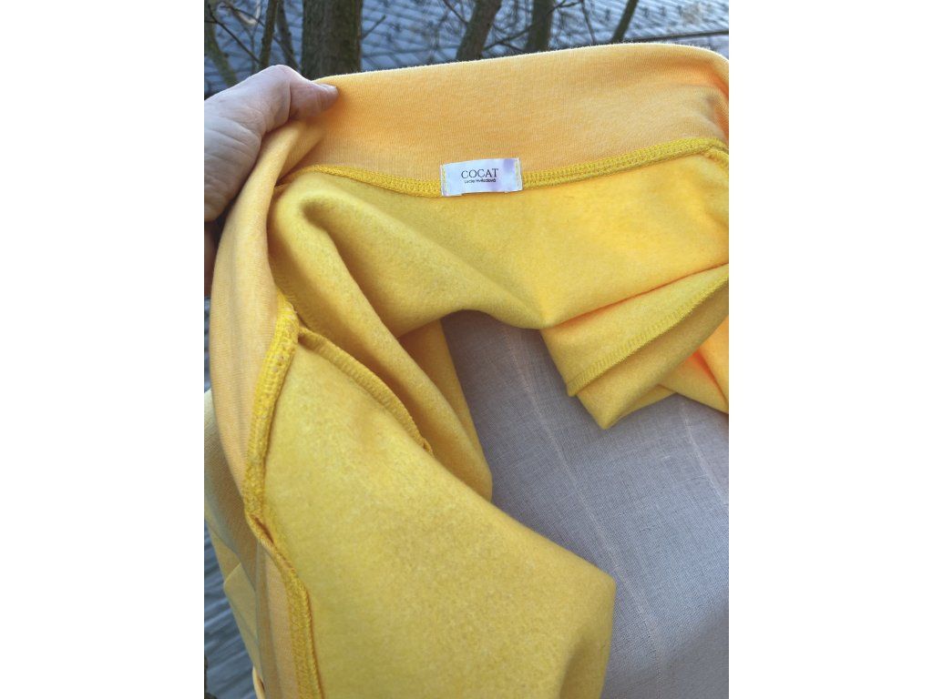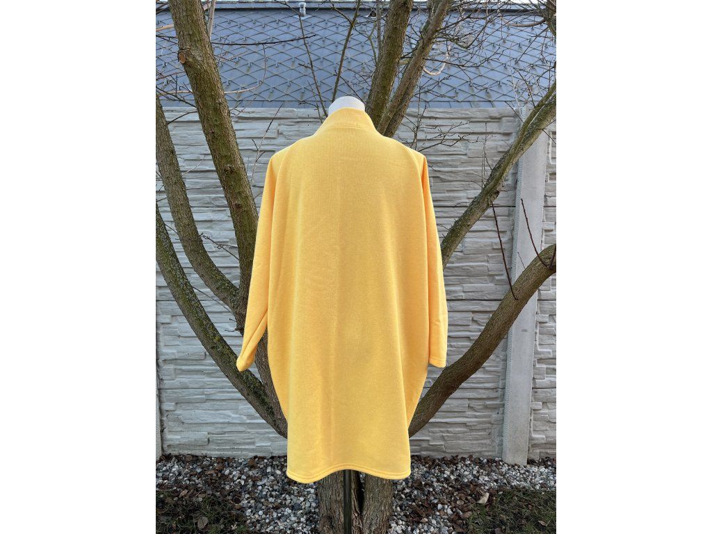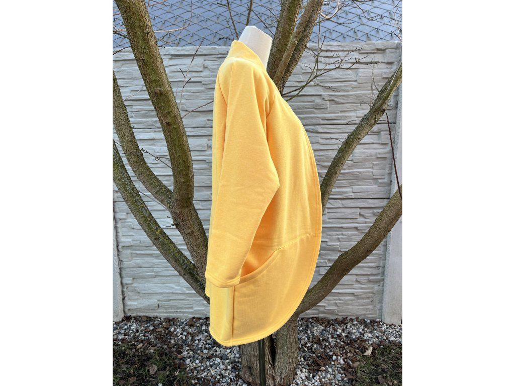 Tento kardigan ve svěží banánové barvě je oversize střihu.