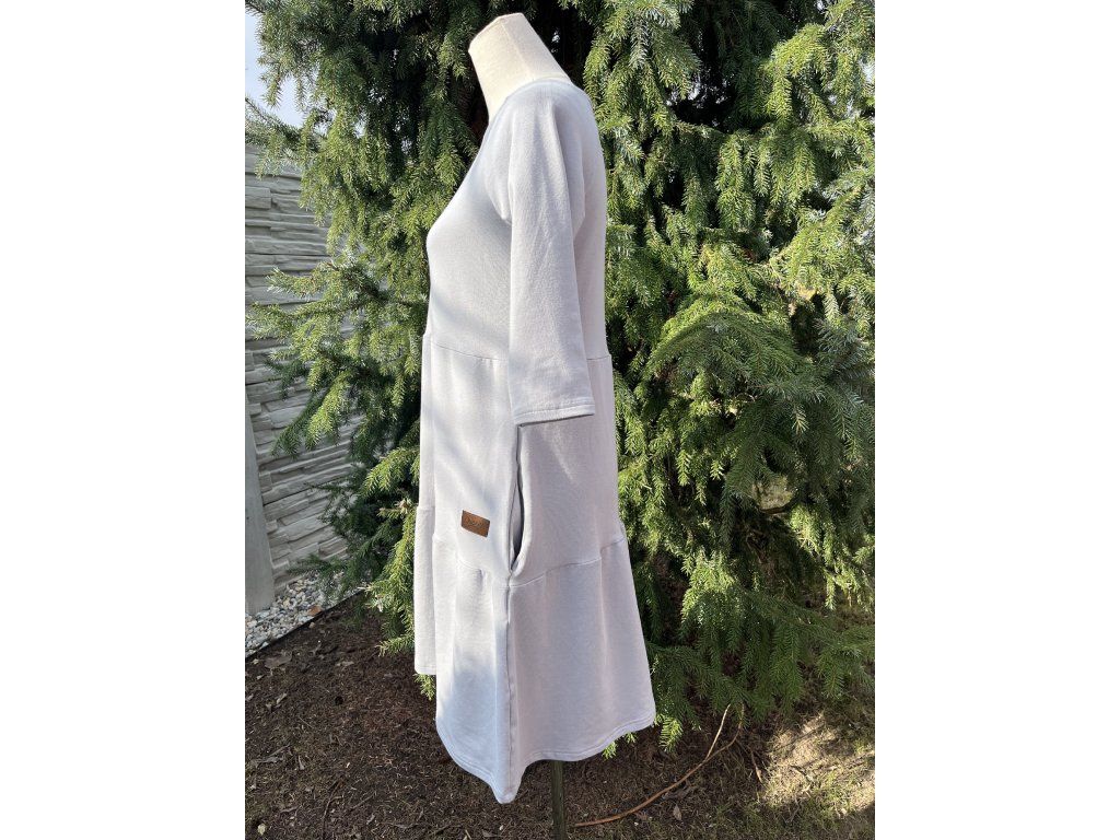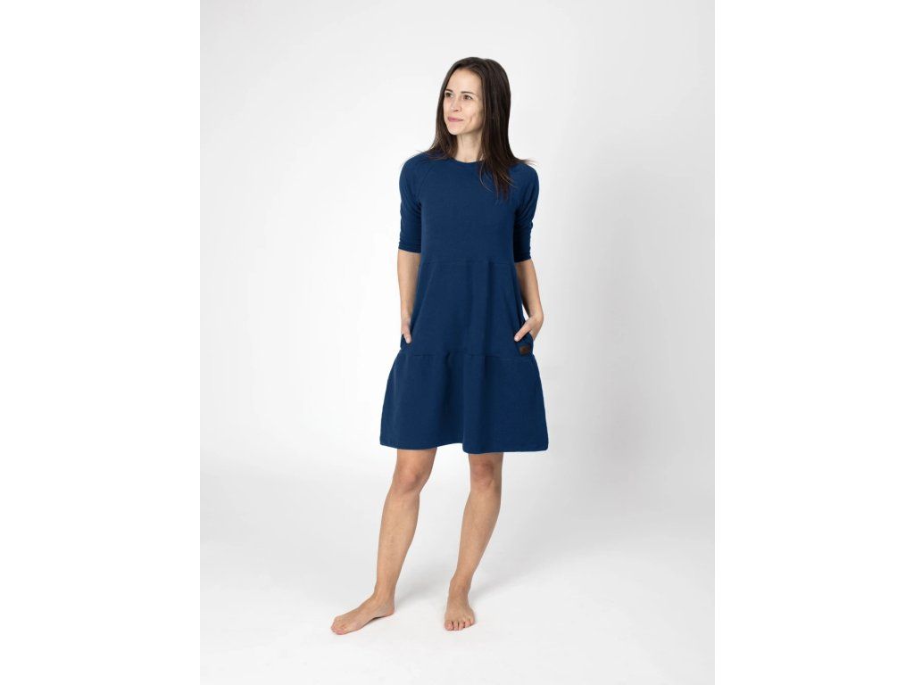 Šaty SOFIE jsou ušité z příjemného bavlněného úpletu s vyšší gramáží. Mají postupně členitý střih, 3/4 rukáv a kapsy. Skvěle se hodí na každý den i chvíle, kdy chcete spojit pohodlí s elegancí.