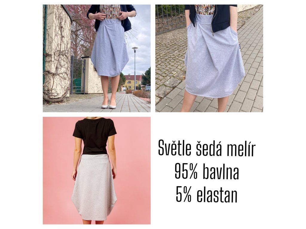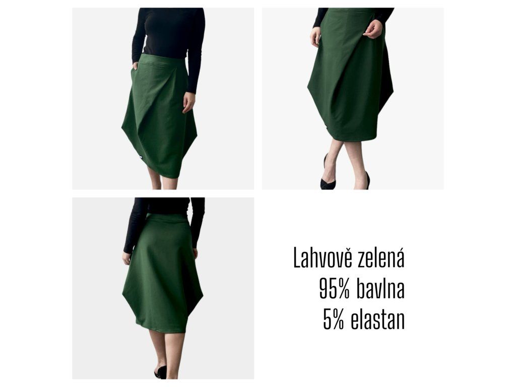 Dámská polodlouhá asymetrická sukně s kapsami. Velmi originální a zároveň pohodlná. Nenechá tě ve štychu i v nepohodlných dnech!