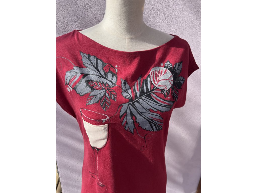 Bavlněná tunika, asymetricky střižená. Pro milovnice bílého vína (motiv na kapsičce).